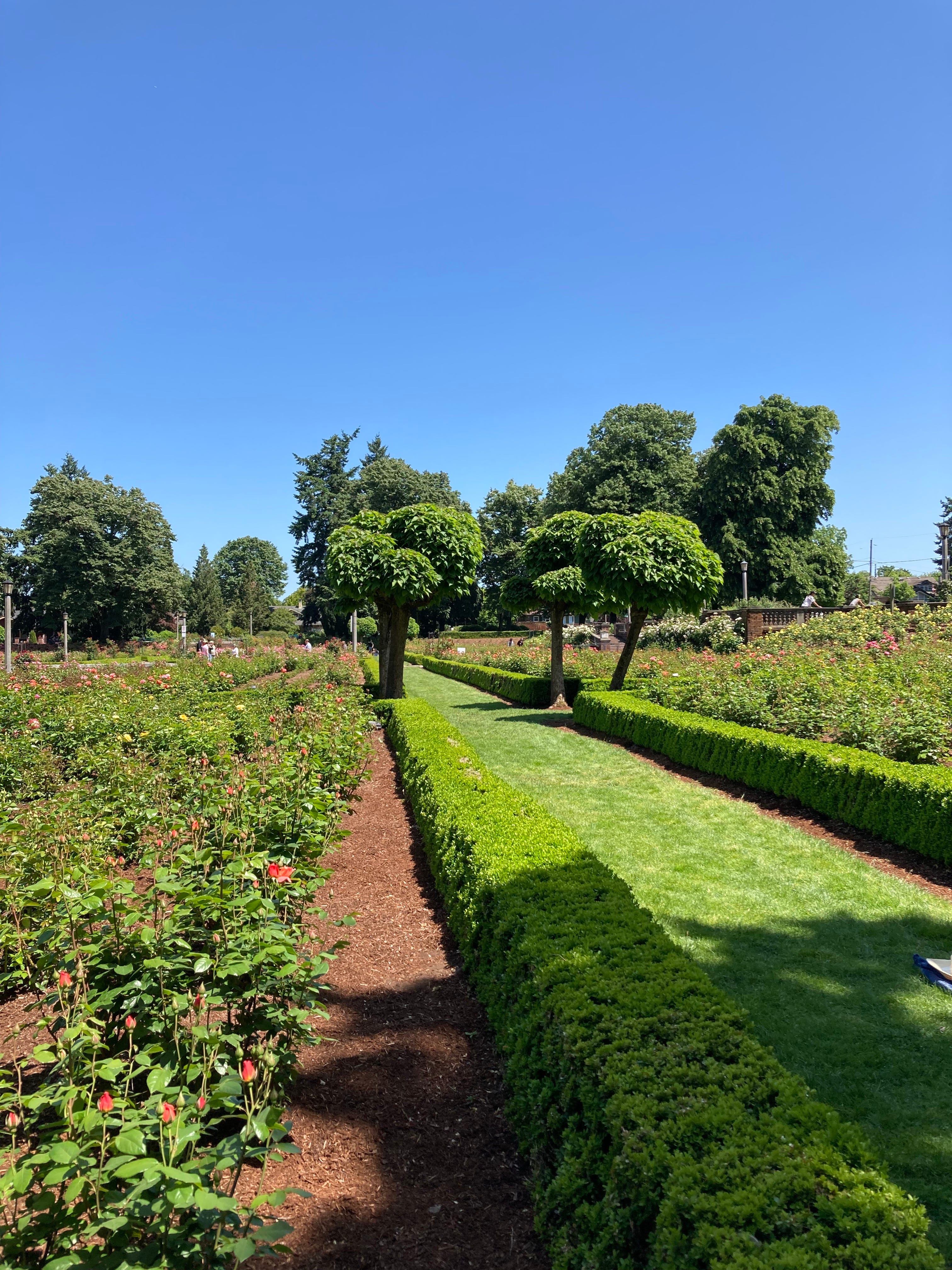 Not the more famous Portland International Rose Test Garden on the West Side of town, but equally enchanting, if not more so, because more intimate and far less crowded, even on a warm, mellow Memorial Day Monday afternoon.